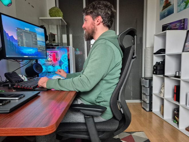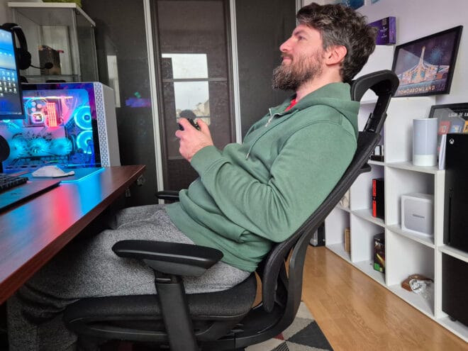 Pas besoin d’investir énormément pour se procurer une chaise ergonomique. FlexiSpot nous permet de tester ici de nombreux produits dont la BS12 Pro qui est actuellement en promo à 279,99€ au lieu de 419€. La chaise est fabriqué avec du tissu respirant 100% polyester. On va retrouver les fonctionnalités de : réglages en hauteur, verrouillage de l’angle d’inclinaison du dossier, de réglage de la profondeur du siège avec également un coussin lombaire adaptatif. Voici les caractéristiques de la chaise :